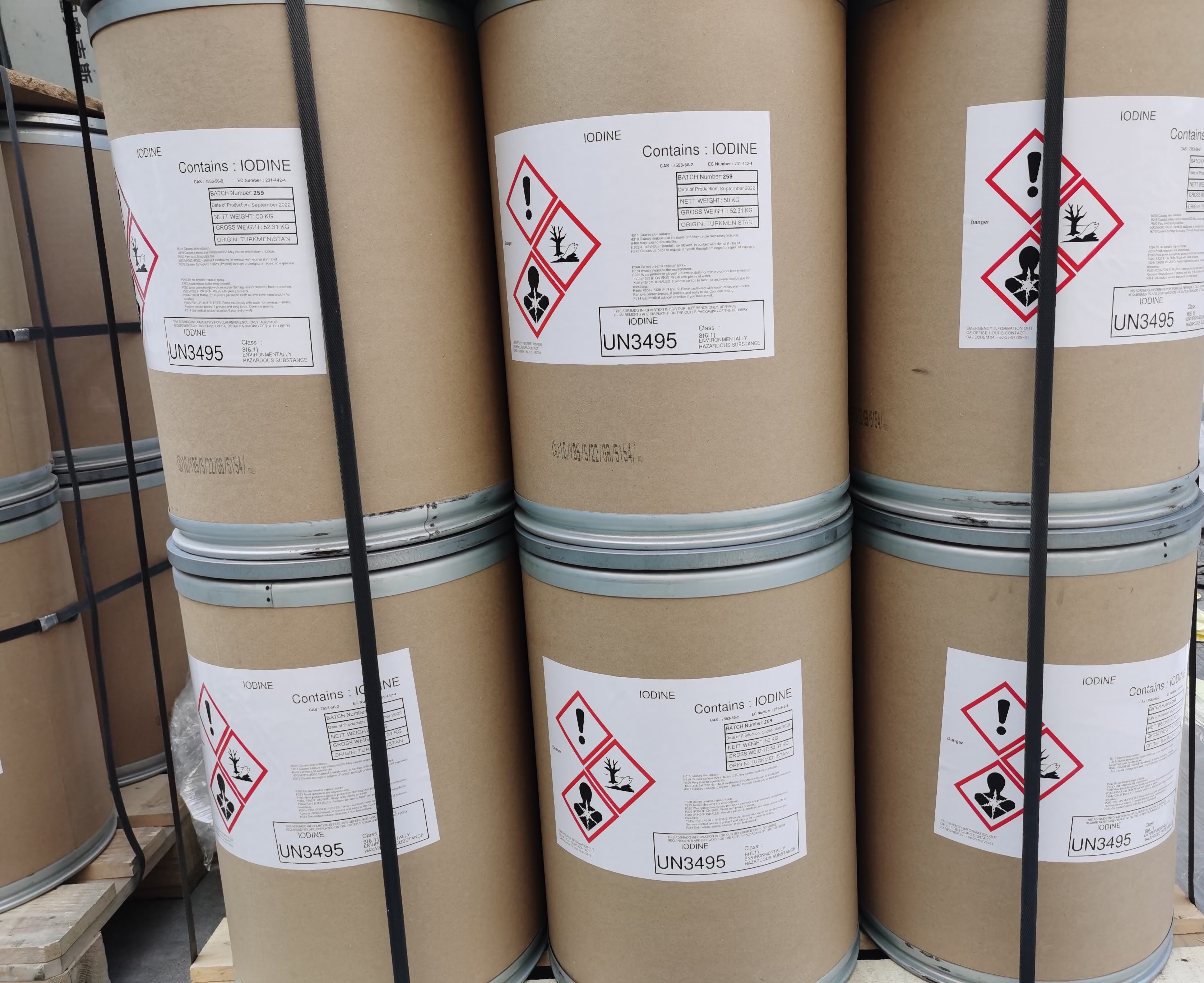 产品名 | 碘 | 英文名 | Iodine | 产品外观 | 紫黑色有光泽的固体 | 包装规格 | 50kg/桶(纸板桶) | 产地 | 土库曼斯坦 | 供应商 | 土库曼斯坦 | 应用 | 制造药物、染料、消毒剂和碘化物等 | 危险类别 | 非危化品 | CAS NO | 7553-56-2 |